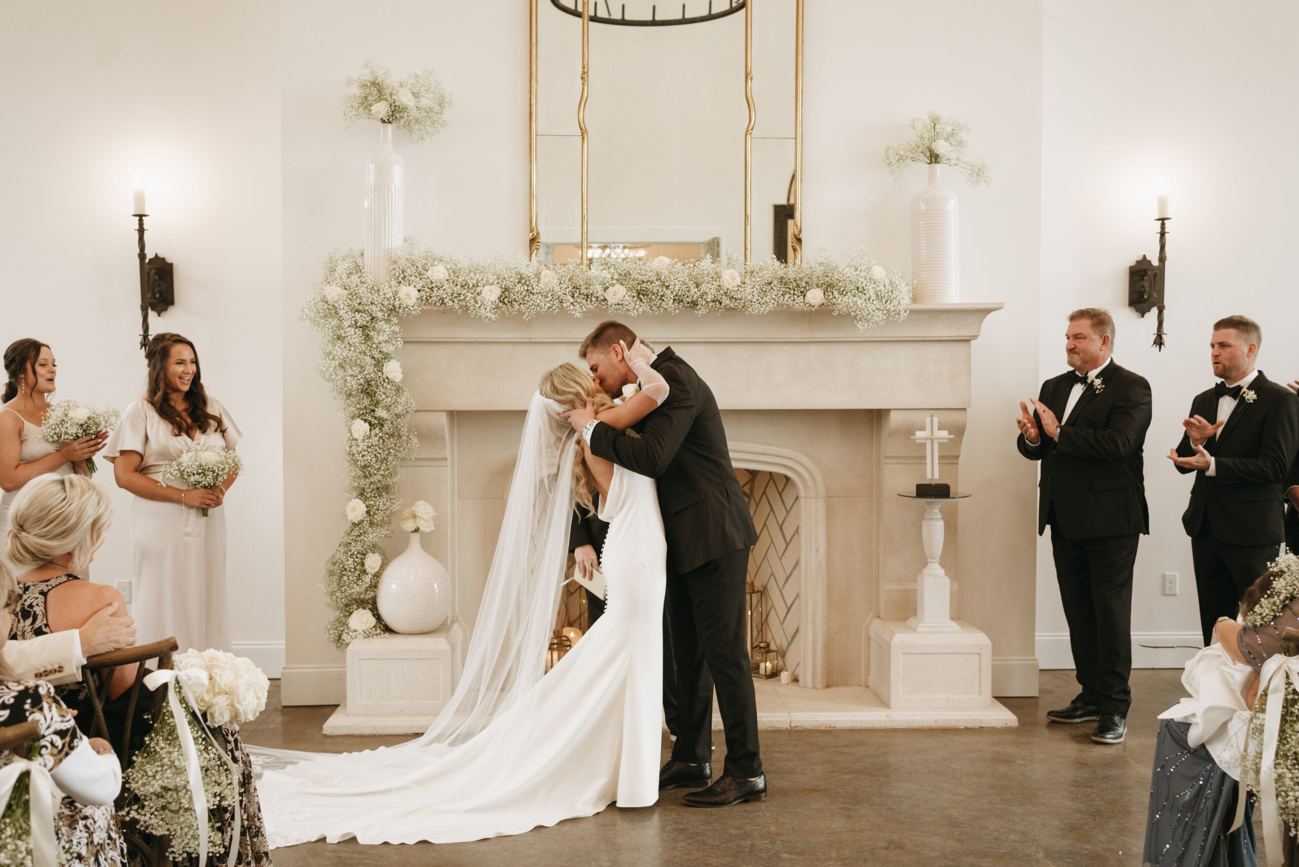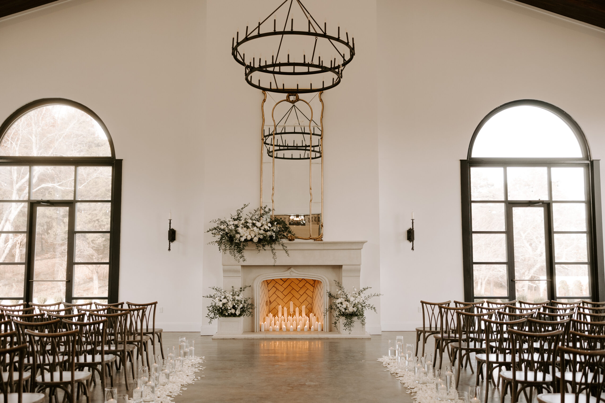 The enchanting fireside room allows for a beautiful indoor ceremony with an outdoor feel. Surrounded by gorgeous arched windows, your guests will enjoy a wonderful view throughout your ceremony and reception. This space can also be utilized for your cocktail hour, dance floor, and so much more at this indoor wedding venue near me!
